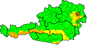 Bei nur geringen Druckgegensätzen stellt sich am Samstag verbreitet unbeständiges Wetter mit einer erhöhten Schauer- und Gewitterneigung ein, nur vom Bodensee bis nach Oberösterreich ist die Luft etwas stabiler geschichtet. Die größte Wahrscheinlichkeit für Gewitter herrscht im Süden und Osten des Landes, ganz besonders vom Bergland Unterkärntens über die südliche und östliche Steiermark bis ins östliche Flachland. Die stärksten Gewitter sind von den Lavanttaler Alpen über das Grazer Bergland bis zum Wechselgebiet zu erwarten, hier kann es örtlich zu Starkregen und kleinem Hagel kommen.
