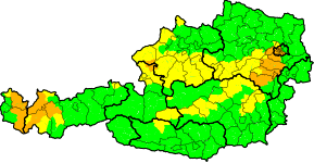 Beim Niederschlag wurde das Soll im landesweiten Schnitt erfüllt, jedoch gibt es regionale Unterschiede. Durch die wiederholt südliche Anströmung der Alpen wurde entlang des Alpenhauptkamms sowie im Süden teilweise die doppelte Menge eines üblichen März registriert und auch im Nordosten fiel mehr Niederschlag. Hier machte sich vor allem am 11. und 12. März ein von Italien kommendes Tief mit 30-stündigem Dauerregen und verbreitet 30 bis 50 l/qm bemerkbar. Zu trocken war es im März hingegen v.a. in Oberösterreich und der Obersteiermark.