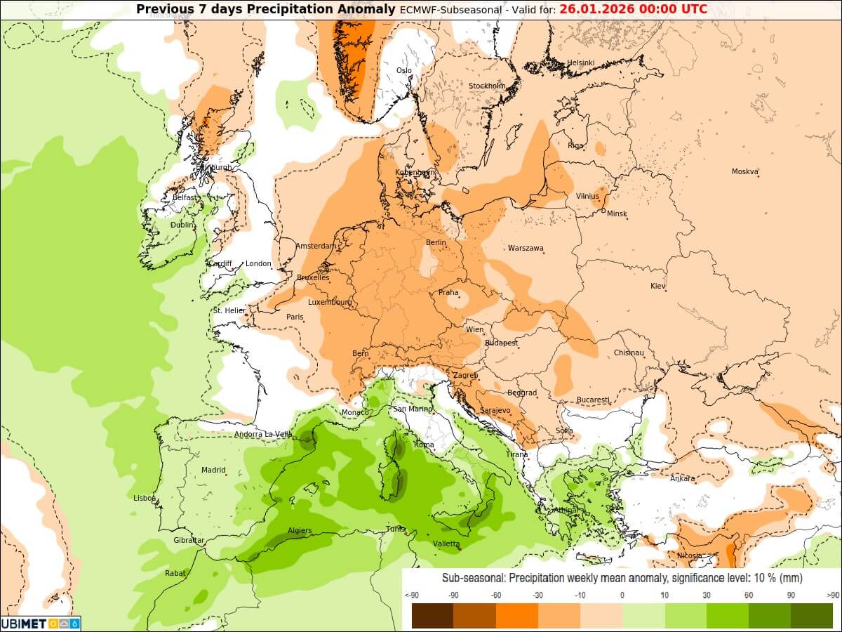 Die Tendenz bis zum Monatsende scheint von der Großwetterlage her relativ abgesichert zu sein: Tiefdruckgebiete werden häufig vom Atlantik in Richtung Nordafrika ziehen. Über Osteuropa etabliert sich hingegen ein mächtiges, blockierendes Hoch, das Fronten und atlantische Feuchtigkeit über mehrere Tage hinweg von uns fern halten wird. In einer föhnigen, zunehmend straffen und auch zunehmend kalten Südostströmung wird es primär in den Niederungen der Südosthälfte winterlich bleiben. Im Westen sind hingegen auch im Zusammenhang mit dem Südföhn vergleichsweise milde Temperaturwerte in Sicht. Erst zum Monatsende hin könnte sich die Kaltluft aus Osteuropa auch nach Westen durchsetzten, die Unsicherheiten sind jedoch noch groß. Was nahezu fix ist: Nennenswerte Niederschläge sind in den kommenden Tagen nicht in Sicht. Der Jänner 2026 könnte somit gebietsweise rekordverdächtig trocken zu Ende gehen.